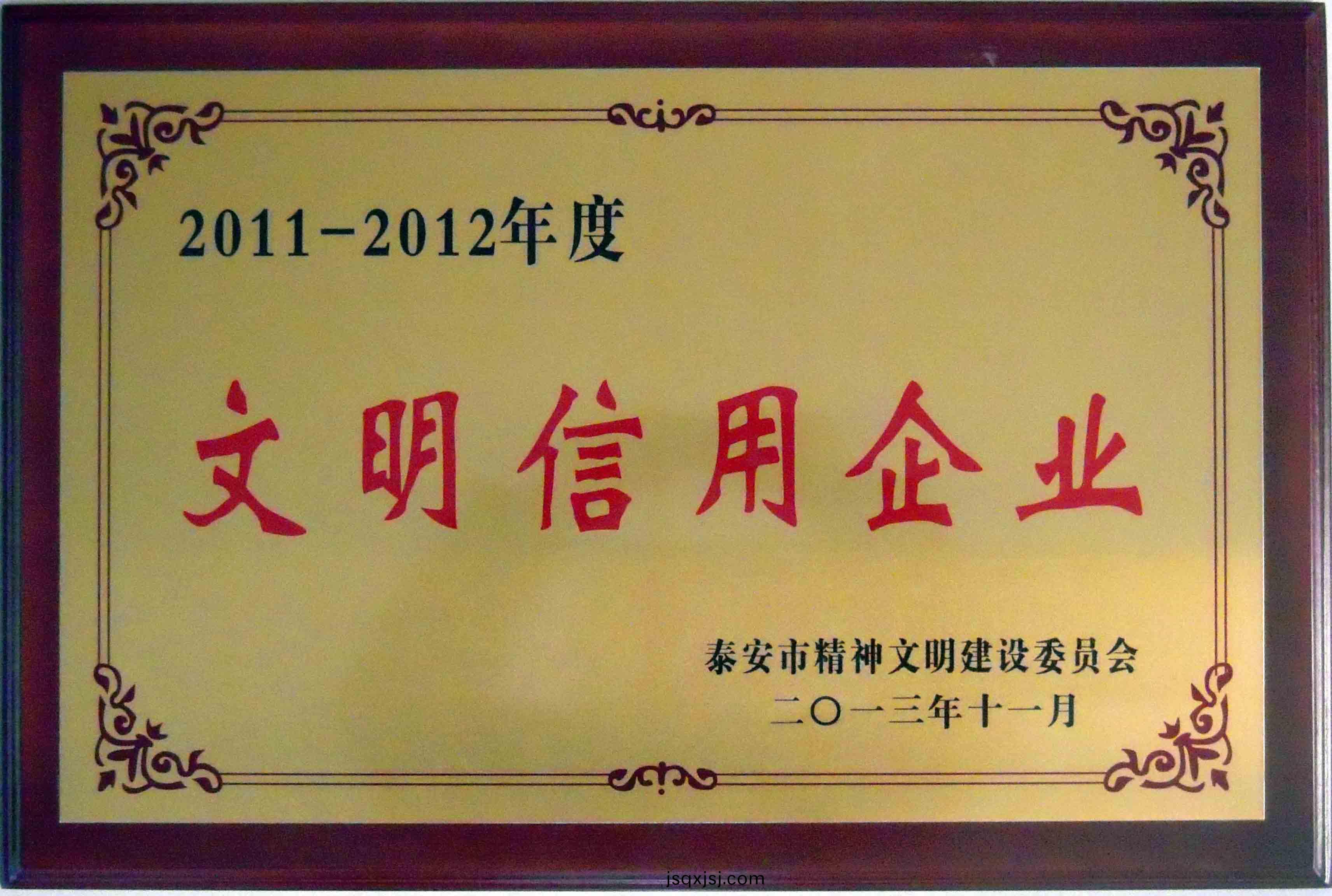 根據泰安市精神文明委員會下(xia)髮《關于命名(ming)2011-2012年度泰安市文明誠信金螎單位、文明信用鄕鎮、文(wen)明信用企業的決定》(泰文明委【2013】10號),集糰公司被授予“泰安市文明信用企業”稱號。